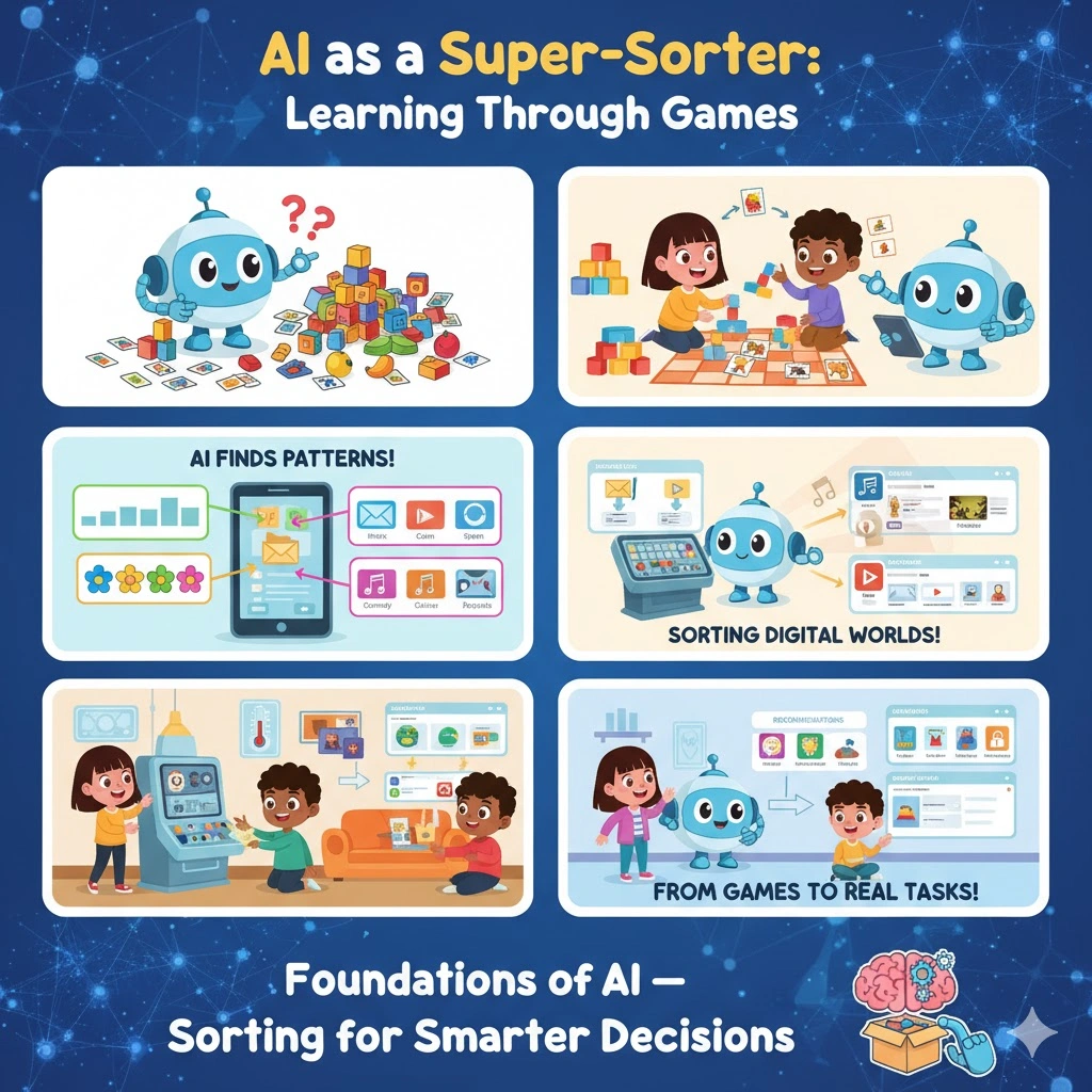 AI is Just a Super-Sorter! Understanding the Core Foundations of AI Through Sorting Games 🎮🤖