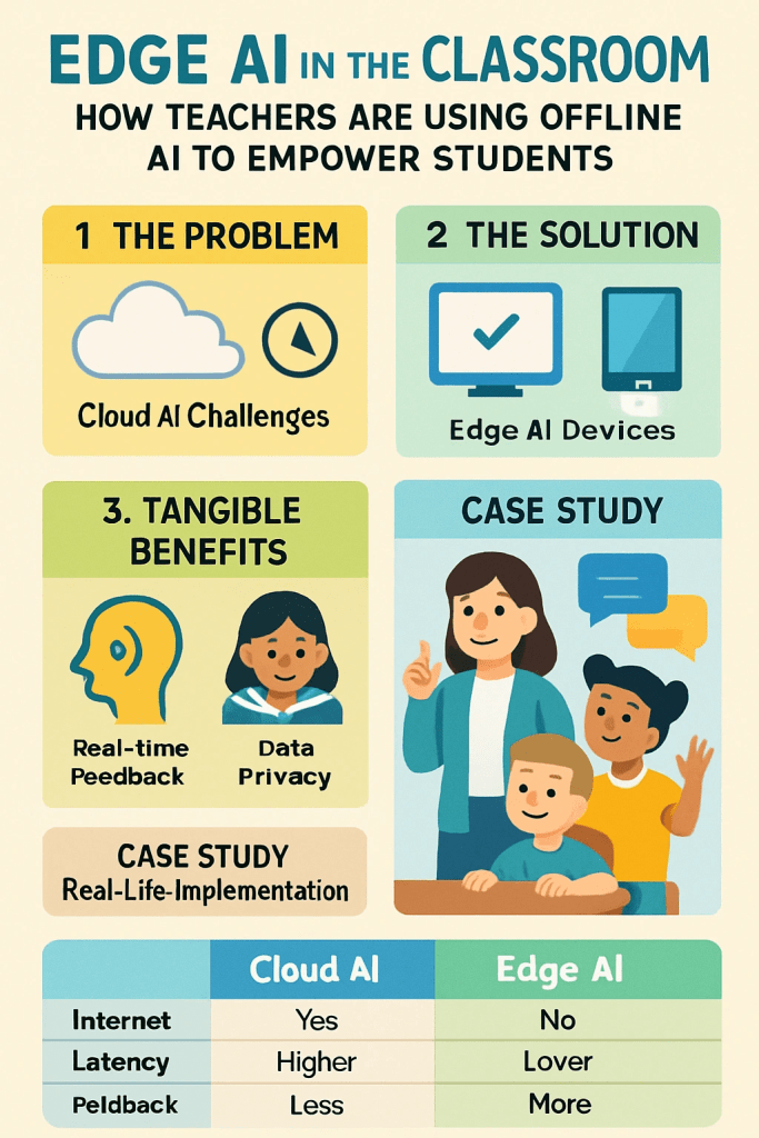 The rise of artificial intelligence has brought powerful educational tools to classrooms, but many schools face challenges using cloud-based AI due to unreliable internet, limited bandwidth, or strict data privacy requirements. Edge AI solves these problems by running AI directly on local devices, allowing teachers to deliver personalized learning experiences without needing constant internet access.