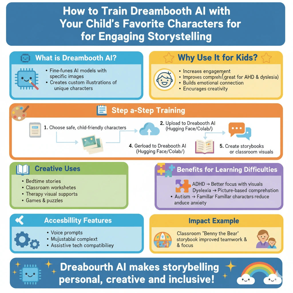Absolutely. Visual storytelling with Dreambooth AI supports focus, comprehension, and emotional learning for children with ADHD, dyslexia, and autism.