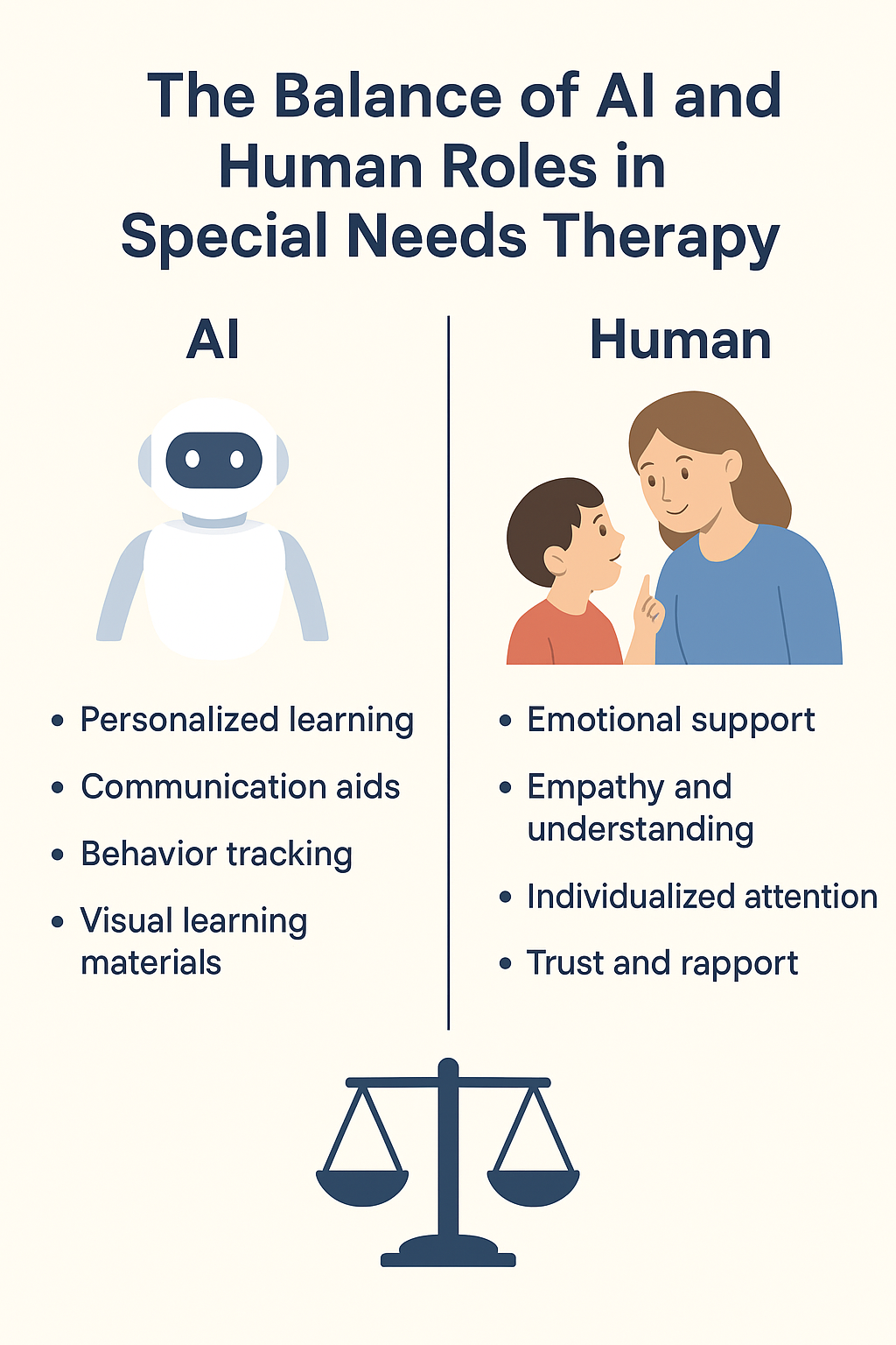 Artificial intelligence is not going away—it’s part of classrooms, therapy centers, and even homes. From chatbots to AI robots, the tools are becoming more powerful. Yet, special needs education and therapy thrive on something AI can’t reproduce: authentic human connection.