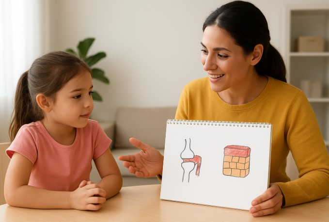 Explaining psoriatic arthritis symptoms in child-friendly language builds trust. Analogies like “rusty hinges” and “fast blocks” make sense to kids.